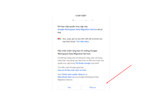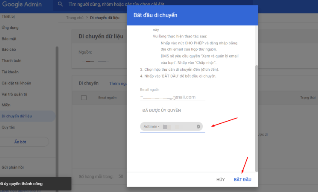 Quá trình chuyển dữ liệu từ gmail cá nhân sẽ diễn ra, thời gian tùy thuộc vào số lượng email của mail nguồn.