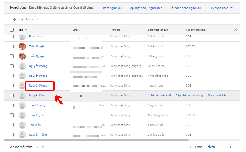 Bước 4: Click vào tên của tài khoản bị lỗi đăng nhập