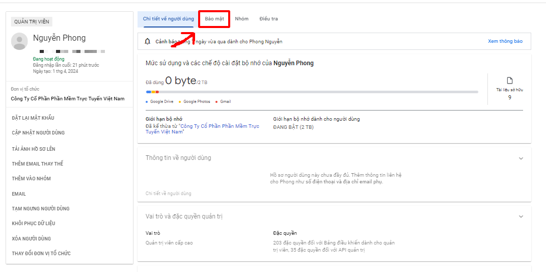 Bước 5: Tiếp tục chọn tab Bảo mật