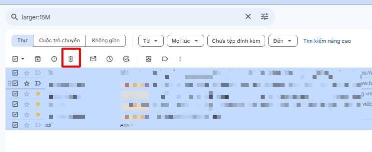 Bước 2: Chọn những email bạn muốn xóa và nhấp vào Xóa