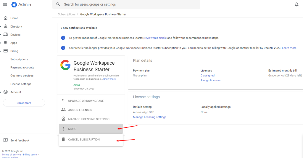 Bạn không thể tự hủy tài khoản Google workspace nếu đang có 1 reseller – đại lý khác quản lý tài khoản của bạn. Trong trường hợp này, bạn cần liên hệ đại lý cũ để họ nhả quyền thanh toán trước khi bắt đầu.