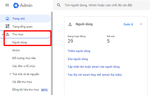 Bước 2: Chọn Người dùng.