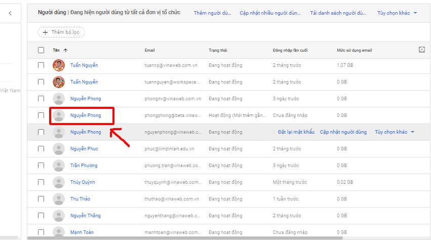 Bước 2: Chọn người dùng bạn muốn thêm alias email