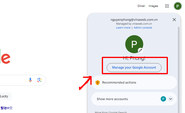 Bước 3: Chọn "Manage your Google Account".