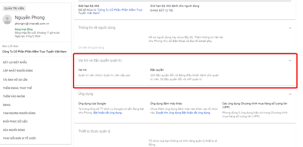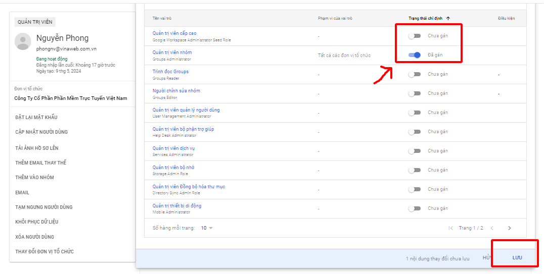 7. Thêm hoặc thay đổi quản trị viên tài khoản Google Workspace