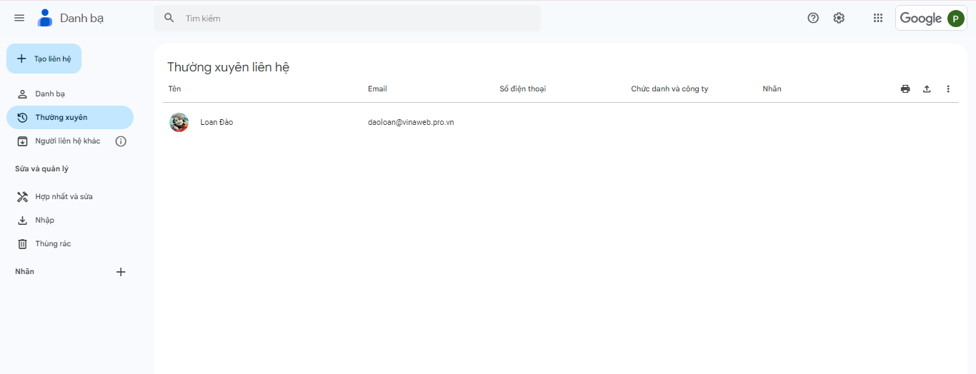 Bước 1: Truy cập trang danh bạ Google: https://contacts.google.com/frequent