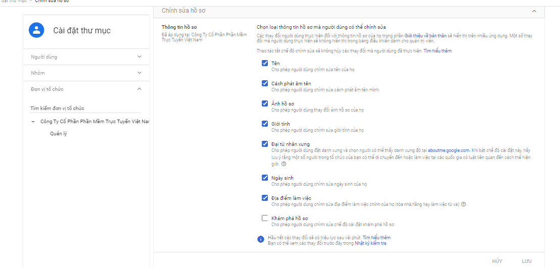 Để cho phép thành viên trong công ty được thay đổi ảnh đại diện, bạn làm theo các bước sau: