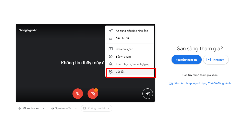 meet.google.comvà chọn cuộc họp bạn muốn tham gia. - Bước 2: Nhấp vào biểu tượng Cài đặt (biểu tượng ba chấm) ở góc trên bên phải màn hình.