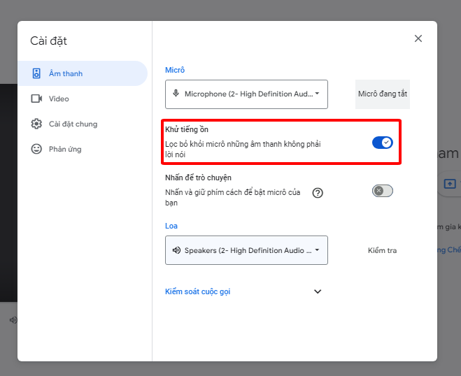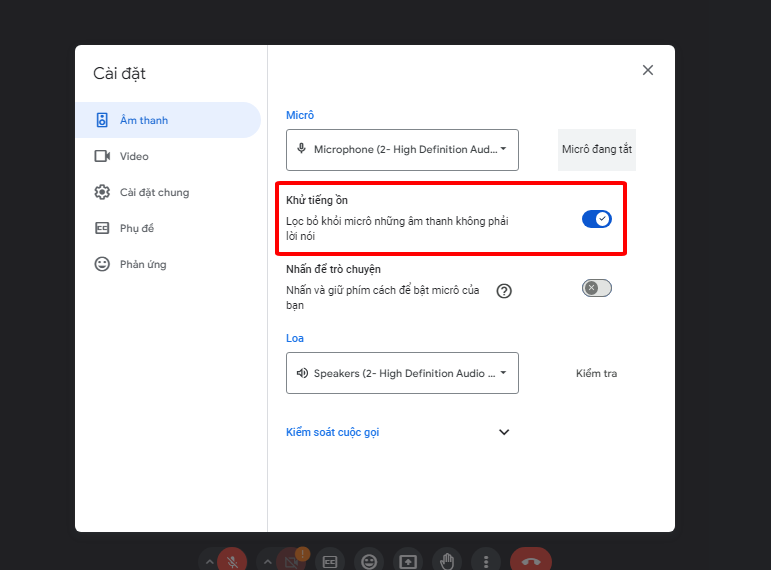 - Một số thiết bị tai nghe có thể có tính năng khử tiếng ồn riêng. Hãy thử bật tính năng khử tiếng ồn trên tai nghe và trong Google Meet để xem hiệu quả nào tốt hơn.