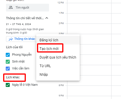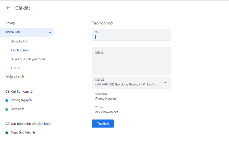 Tạo lịch mới .