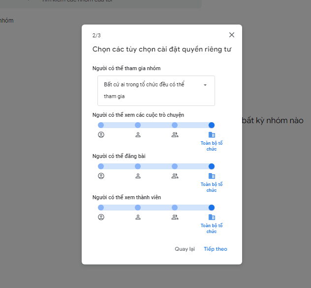 Bước 3: Nhập thông tin và chọn cài đặt cho nhóm. Dưới đây là một số cài đặt được đề xuất: