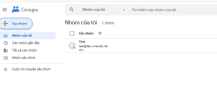 Bước 2: Ở trên cùng, nhấp vào Tạo nhóm.
