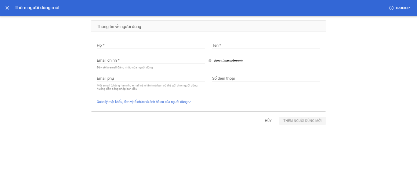 Bước 3: Ở đầu trang, nhấp vào Mời người dùng mới/Thêm người dùng mới. Bảng người dùng mới sẽ hiện ra.