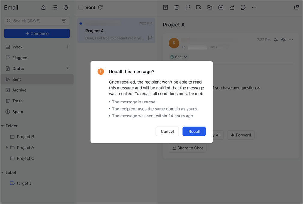 Tính năng thu hồi thư (Recall)
