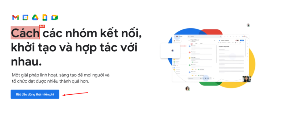 Bước 1: Đầu tiên, bạn truy cập vào trang web chính thức của Google Workspace và chọn “Bắt đầu dùng thử miễn phí”. Google cho phép bạn dùng thử miễn phí trong 14 ngày trước khi quyết định đăng ký chính thức.
