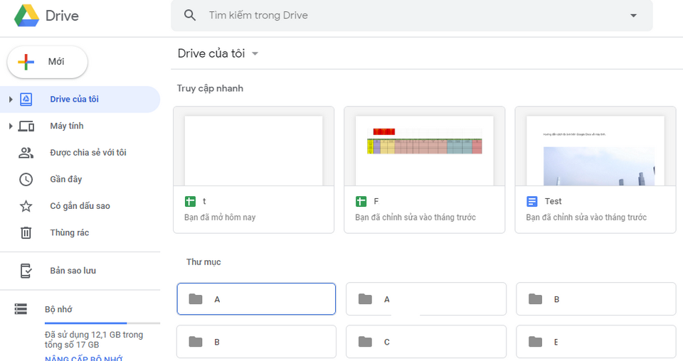 Google Drive thông qua giao diện người dùng (UI)
