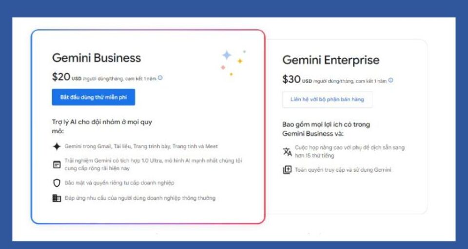 Các gói Gemini dành cho doanh nghiệp