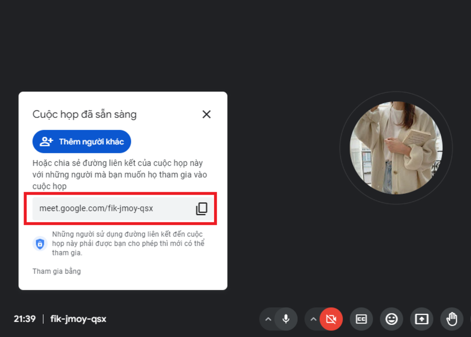- Bước 3: Sau khi phòng họp được tạo, bạn có thể mời người tham gia bằng cách gửi liên kết hoặc nhập email người tham gia.