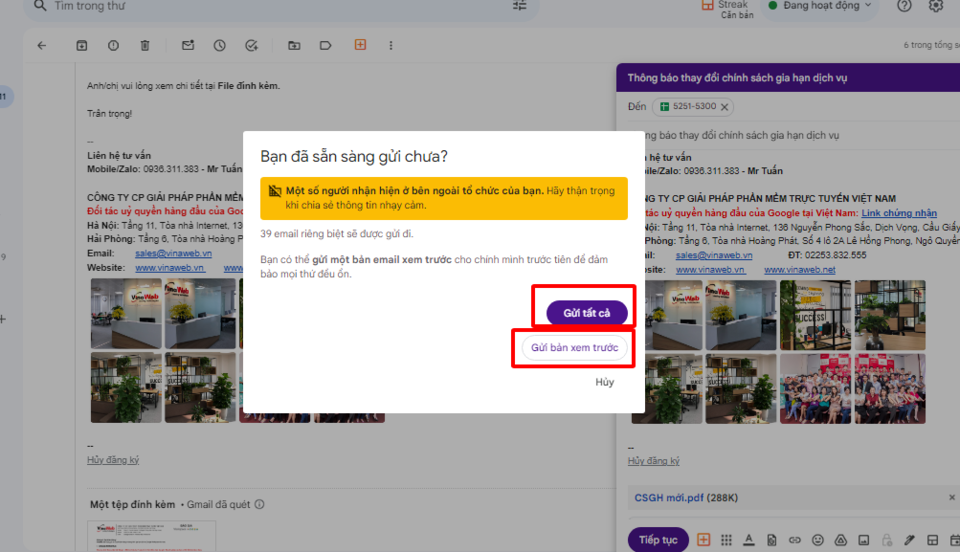 - Gửi tất cả: Gửi email đến toàn bộ danh sách dữ liệu của bạn.