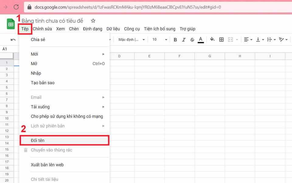 - Chúng ta cần nhấn mục Tệp để chọn mục Đổi tên.