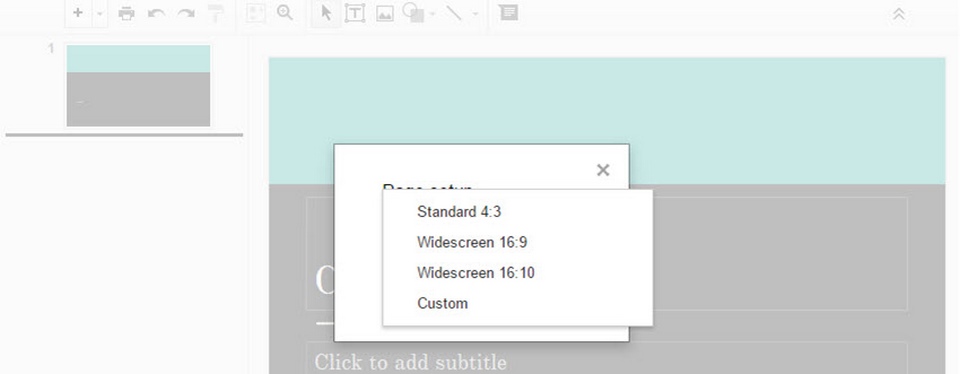 Đến với bước xác định tỷ lệ khung hình cho các slide, chúng ta cần chọn mục File để vào Page Setup. Hãy sử dụng các mục Standard 4:3, Widescreen 16:9, Widescreen 16:10 và Custom để cân đối khung hình.