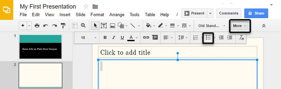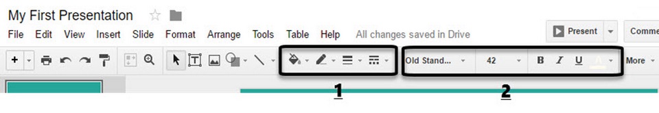 Biểu tượng ở giữa công cụ cho phép chỉnh sửa dạng văn bản hộp. Chẳng hạn như màu nền và đường viền. Biểu tượng bên phải cho phép chỉnh sửa hình dạng của văn bản như kiểu chữ, cỡ chữ, màu sắc và các kiểu đậm, gạch dưới và nghiêng.