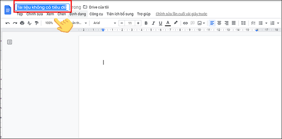 - Khi giao diện tài liệu hiển thị thì bạn hãy quan sát vị trí góc trái trên màn hình. Đây là nơi bạn có thể nhập tiêu đề và tiến hành soạn thảo tài liệu.