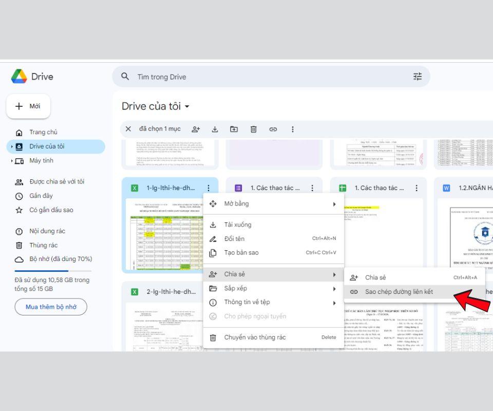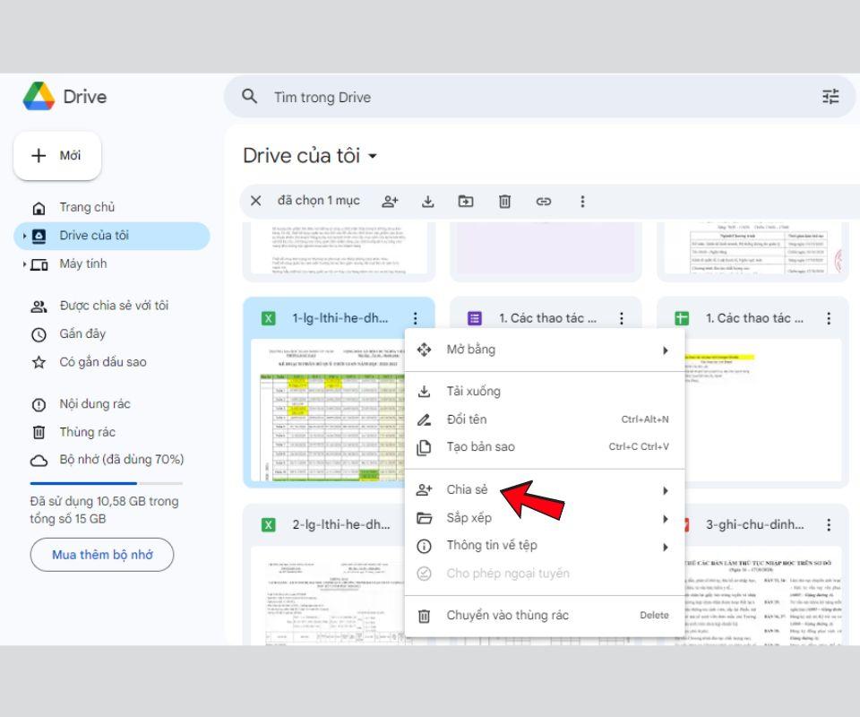 Nhấn chọn vào tệp muốn chia sẻ