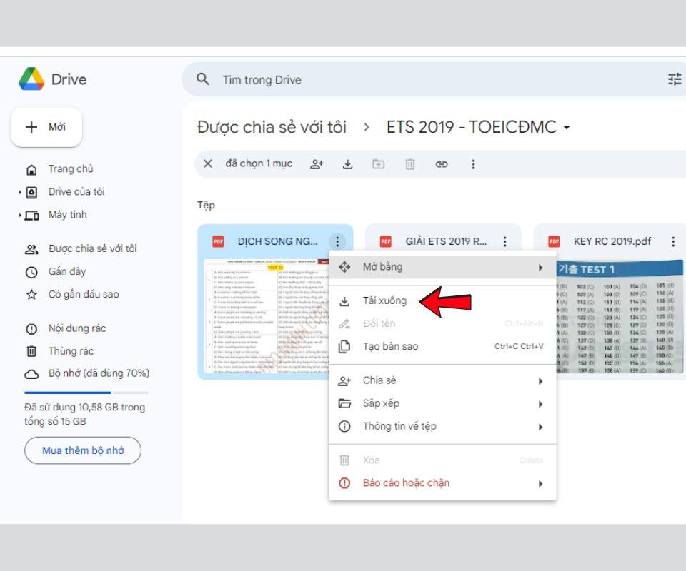 Tải tệp/thư mục từ Drive xuống máy tính