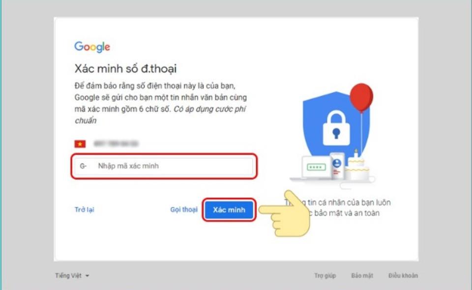 Xác minh tài khoản qua số điện thoại