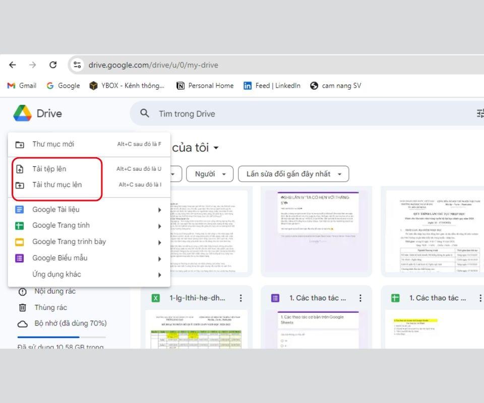 Chọn tệp tin cần tải lên Drive