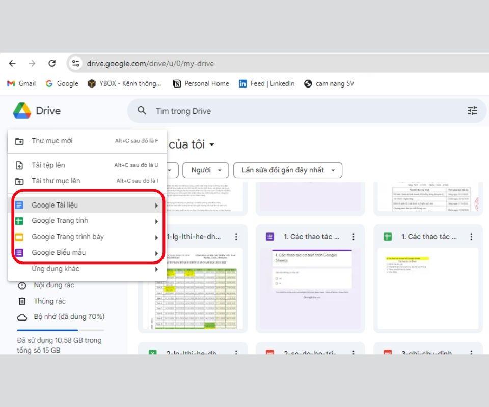 Bên cạnh việc tải tài liệu lên Drive, người dùng cũng cần phải biết cách tạo tập tin và tài liệu mới.