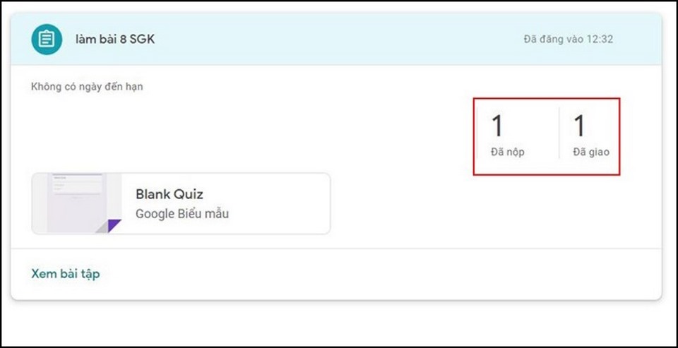 - Kiểm tra tình trạng: Trong mục "Bài tập", chọn bài tập vừa tạo. Bạn sẽ thấy số lượng học sinh đã nộp bài ("Đã nộp") và tổng số học sinh được giao bài ("Đã giao").