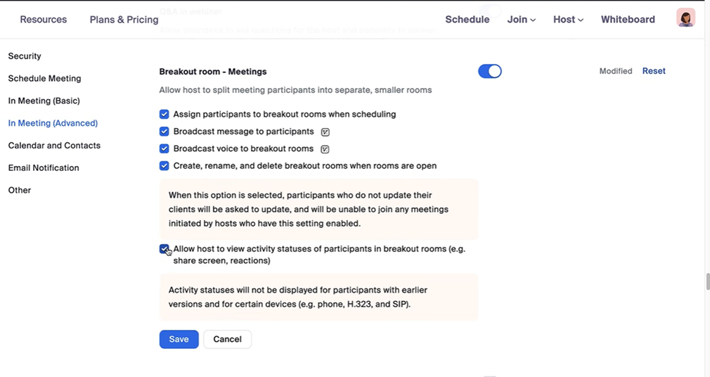 Bật tùy chọn Breakout Room pre-assign trong phần cài đặt