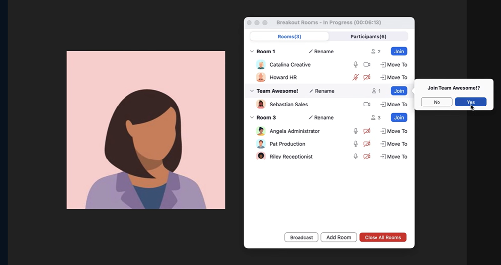 Sau khi hoàn tất, người tham gia sẽ được chuyển vào phòng riêng và có thể quay lại phòng chính khi breakout rooms kết thúc.